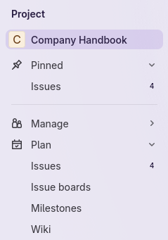 Sidebar showing menu items under the project header, such as “Manage” and “Plan.” Under the plan header is the “Issues” link.